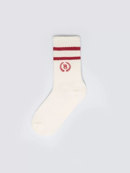 Skarpety damskie długie białe z czerwonymi paskami Prepaliana 603