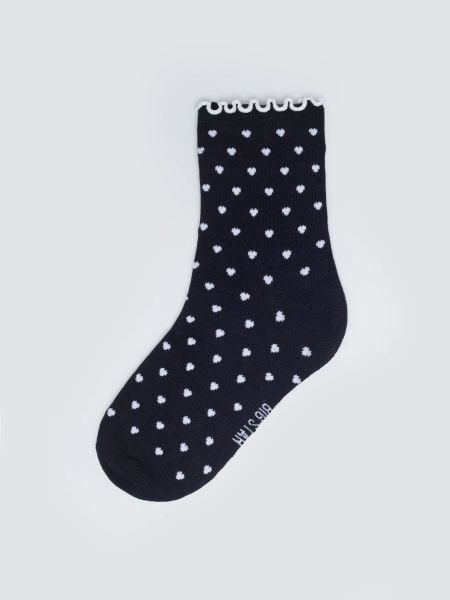 Skarpety damskie długie w białe serduszka czarne Hartisa 906