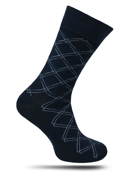 Ciemne Granatowe Bawełniane Skarpetki Męskie -Chattier- w Tłoczony Wzór w Romby, Jednokolorowe