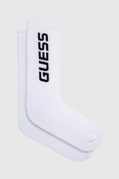 Białe skarpetki marki Guess, wykonane z miękkiej i elastycznej dzianiny. Zapewniają komfort noszenia na co dzień i pasują do różnych stylizacji. Rozmiar uniwersalny.