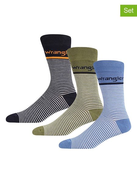 Wrangler Skarpety (3 pary) „Healey” w kolorze czarnym, niebieskim i oliwkowym rozmiar: 43-46