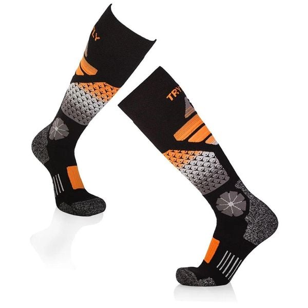 Skarpety narciarskie z wełny merynosów 3/4 długości, czarno-pomarańczowe