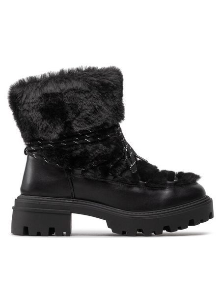 Czarne Śniegowce z Ekozamszu na Grubej Podeszwie z Futrzaną Wyściółką Emmizola