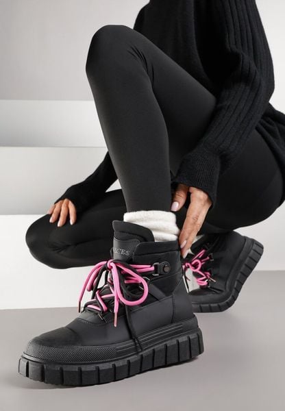 Czarne Śniegowce Vices na Platformie z Tłoczeniem Anorrise