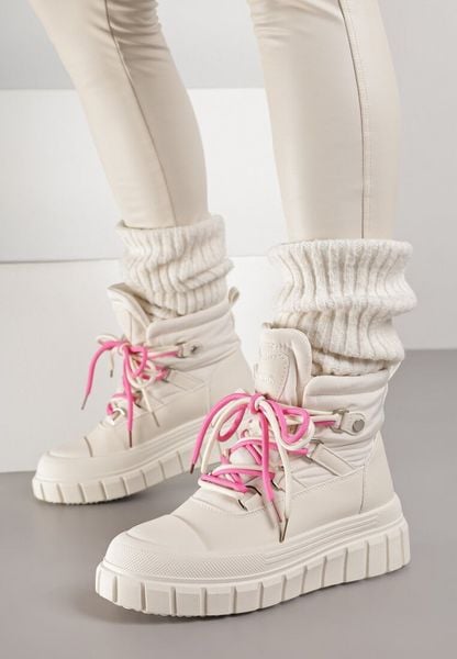 Beżowe Śniegowce Vices na Grubej Tłoczonej Podeszwie Anirrise