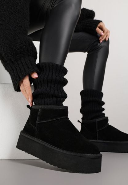 Czarne Wsuwane Śniegowce na Platformie z Cholewką z Zamszu Naturalnego Mevelessa