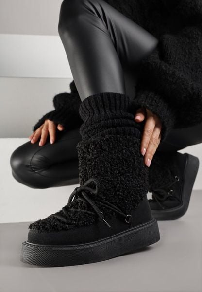 Czarne Śniegowce Ozdobione Futerkiem w Stylu Baranka Allero