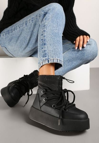 Czarne Sznurowane Śniegowce na Grubej Podeszwie ze Ściągaczem Tintoriae