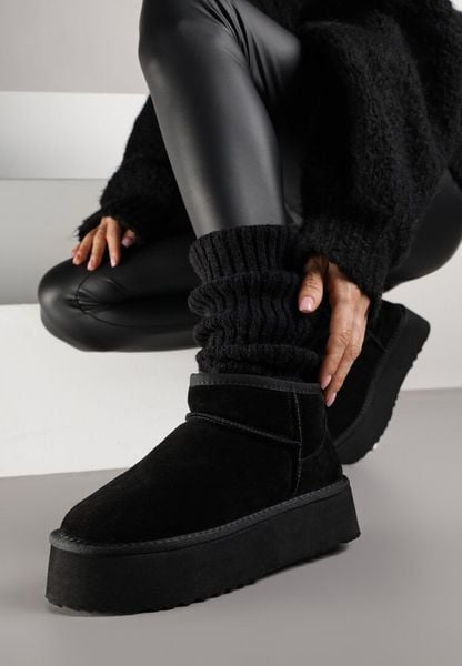 Czarne Wsuwane Śniegowce na Platformie z Cholewką z Zamszu Naturalnego Mevelessa