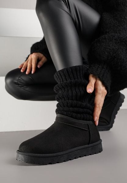 Czarne Wsuwane Śniegowce z Niską Cholewką Alodla