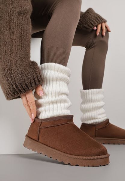 Brązowe Wsuwane Śniegowce na Platformie z Cholewką z Zamszu Naturalnego Mevelessa