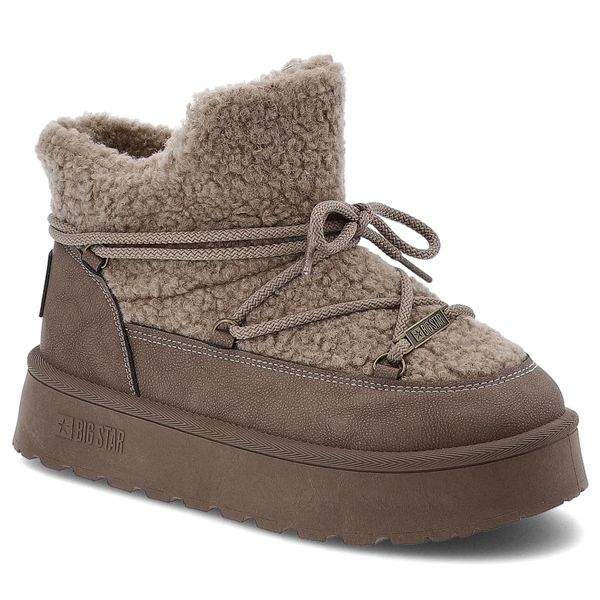 Śniegowce damskie Big Star, ocieplane futerkiem na grubej platformie z okrągłym noskiem, brązowe, SS274112