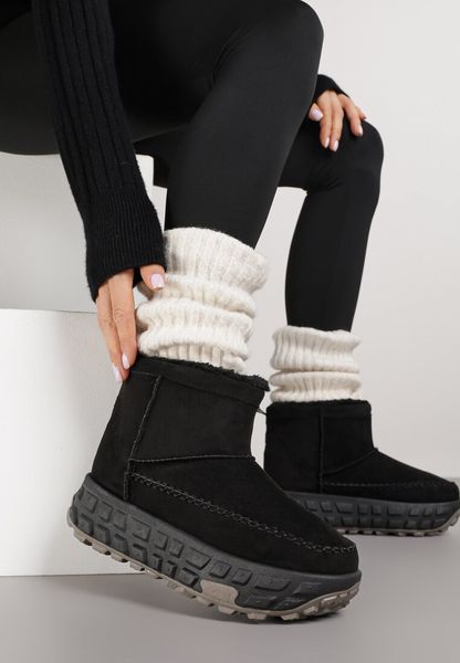 Czarne Śniegowce na Grubej Tłoczonej Podeszwie Apenella