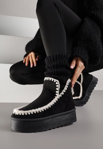 Czarne Śniegowce na Grubej Podeszwie z Haftem Maretusa