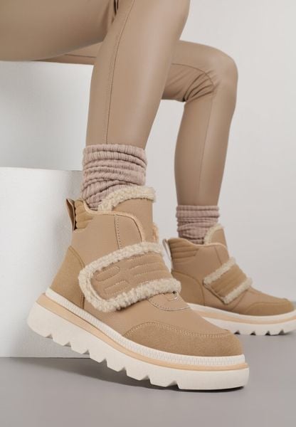 Beżowe Śniegowce z Pikowanym Przeszyciem i Futerkiem na Grubej Podeszwie Amartina
