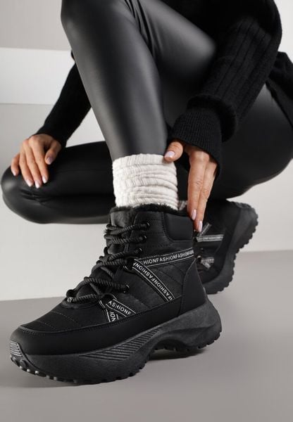 Czarne Śniegowce na Grubej Podeszwie z Geometrycznym Wzorem Alwedea