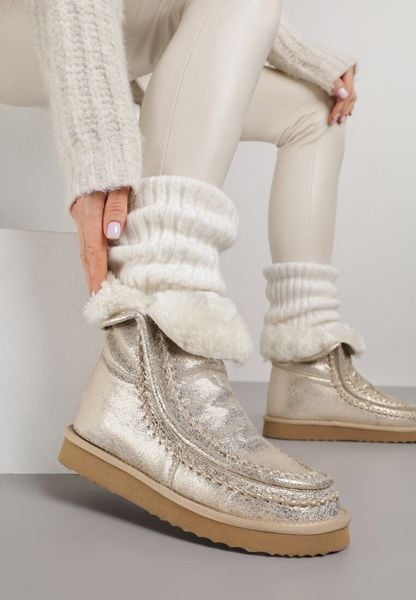 Złote Metaliczne Śniegowce Wsuwane Zdobione Futerkiem Vetirene