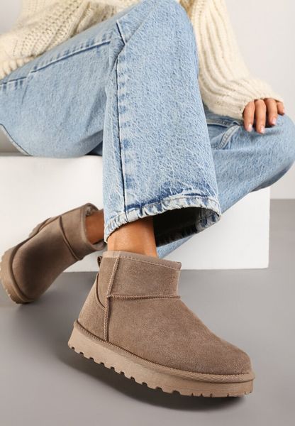 Ciemnobeżowe Niskie Śniegowce Ekozamszowe na Platformie Mocno Ocieplane Reathra