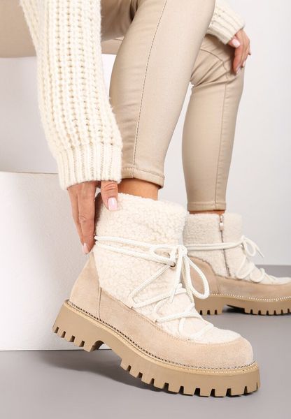 Beżowe Futerkowe Śniegowce na Tłoczonej Podeszwie Ozdobionej Cyrkoniami Rialuna