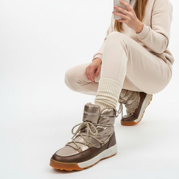Śniegowce damskie Big Star, z połączenia materiału tekstylnego i syntetycznego z pikowaną cholewką klasycznym sznurowaniem, złote, KK274276