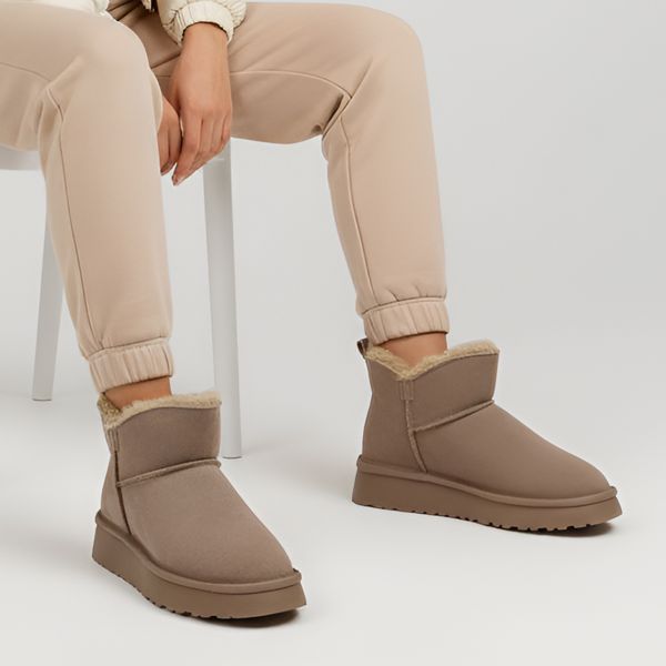 Śniegowce damskie Vinceza, zamszowe z okrągłym noskiem i ocieplane futerkiem, beżowe, 97961-BE