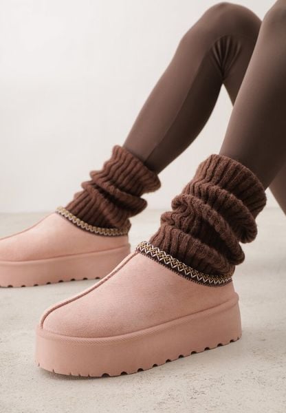 Różowe Śniegowce na Platformie z Niską Cholewką i Haftowanym Wzorem Zivilae