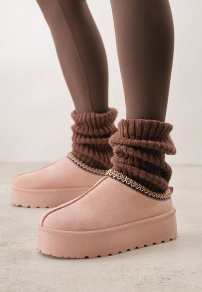 Różowe Śniegowce na Grubej Podeszwie z Ozdobnym Haftem Zivirae
