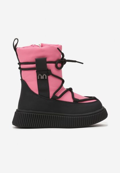 Różowe Śniegowce na Grubej Podeszwie z Kolorową Wstawką i Suwakiem Debina