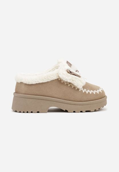Beżowe Wsuwane Śniegowce z Imitacji Zamszu na Płaskiej Podeszwie Mirirae