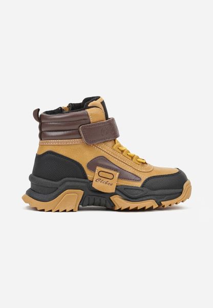 Czarno-Brązowe Traperki Clibee na Płaskiej Podeszwie z Tłoczoną Ozdobą Berista