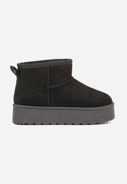 Czarne Wsuwane Śniegowce z Imitacji Zamszu na Platformie Tusanala