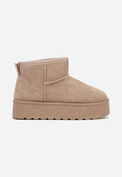Ciemnobeżowe Wsuwane Śniegowce z Imitacji Zamszu na Platformie Tusanala