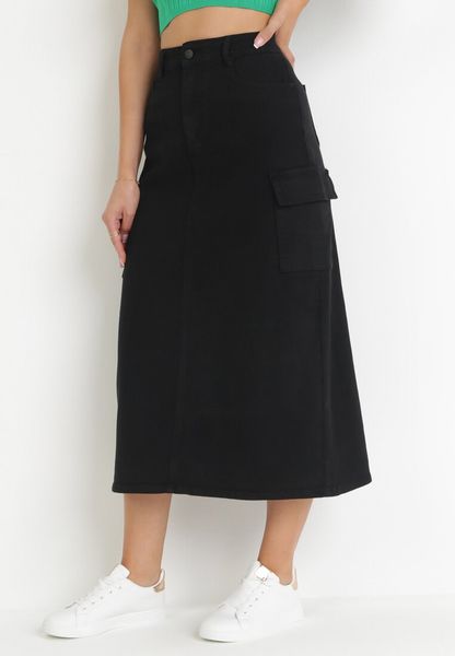 Czarna Jeansowa Spódnica Midi z Szerokimi Kieszeniami Varsha