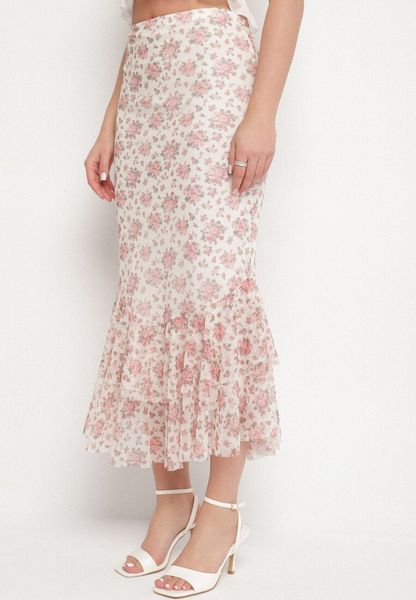 Biało-Różowa Spódnica o Dopasowanym Kroju Zdobiona Falbanką Efririsse