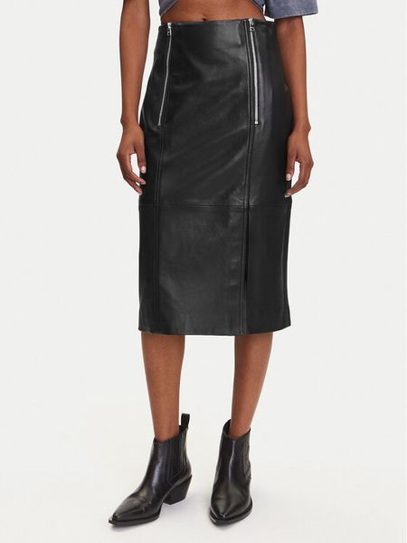 HUGO Spódnica skórzana Leomira 50542308 Czarny Regular Fit
