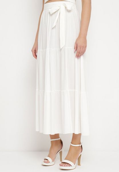 Biała Wiskozowa Spódnica Maxi Rozkloszowana z Paskami Saosa