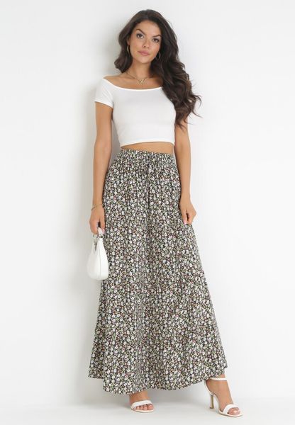 Spódnica Nusra o długości maxi, wykonana z bawełnianej tkaniny w kwiaty. Zachwyca zwiewnym, rozkloszowanym fasonem. W pasie wszyta gumka, z wiązanym troczkiem z przodu. Bez podszewki.