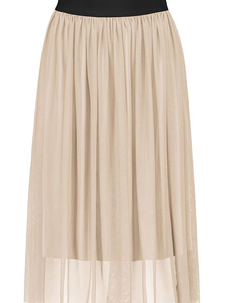 – wysokość pasa: high waist- pas / ściągacz: elastyczny- zintegrowana halka: tak- detale: tiul- krój: luźny- look: jednokolorowy
