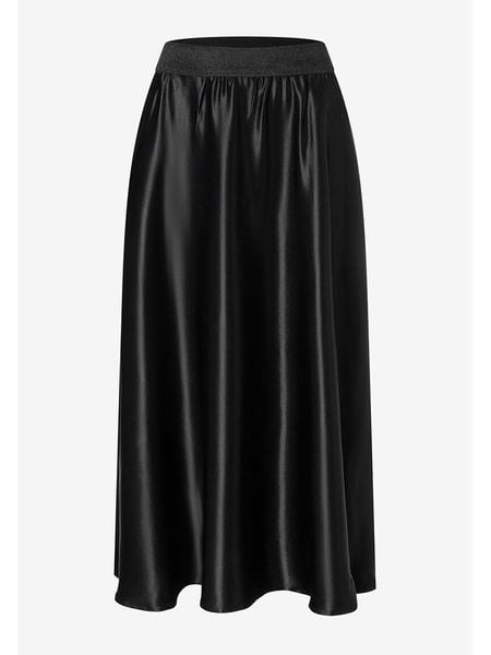 Czarna Spódnica Rozkloszowana z Wiskozą High Waist Ozdobiona Łańcuszkiem Olirive