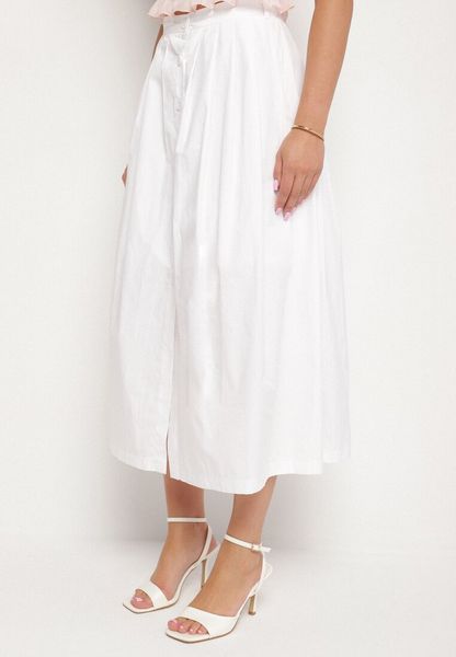 Biała Bawełniana Spódnica o Rozkloszowanym Kroju Hallianea