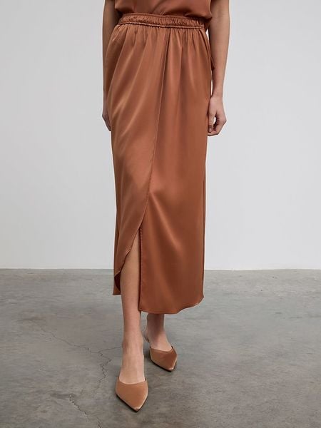 – wysokość pasa: high waist- pas / ściągacz: elastyczny- dolny brzeg: z rozcięciem- krój: prosty- look: jednokolorowyUwaga: Przy wyborze właściwego wariantu zaleca się korzystanie z tabeli rozmiarów.