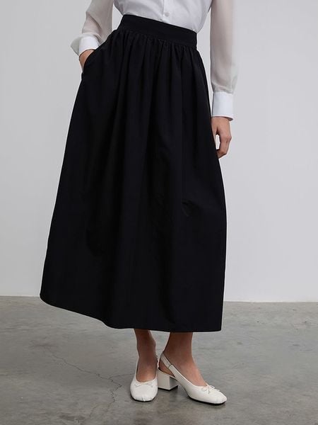 Czarna Rozkloszowana Spódnica z Szerokimi Plisami i Klamerkami na Wysokości Talii Elanara