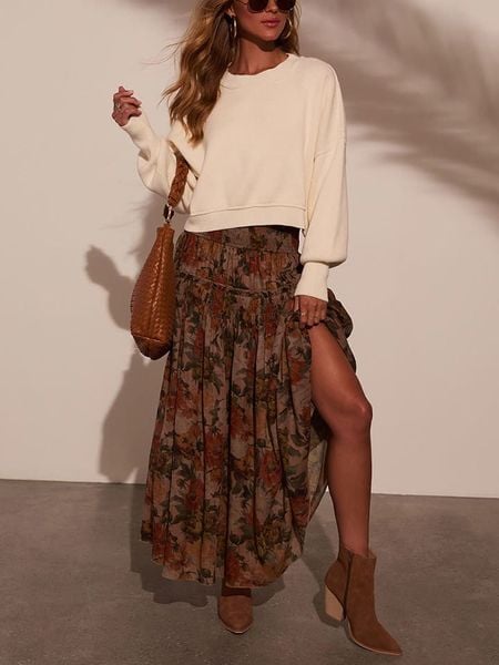 – pas / ściągacz: elastyczny- detale: falbany- krój: luźny- wzór: kwiatowy