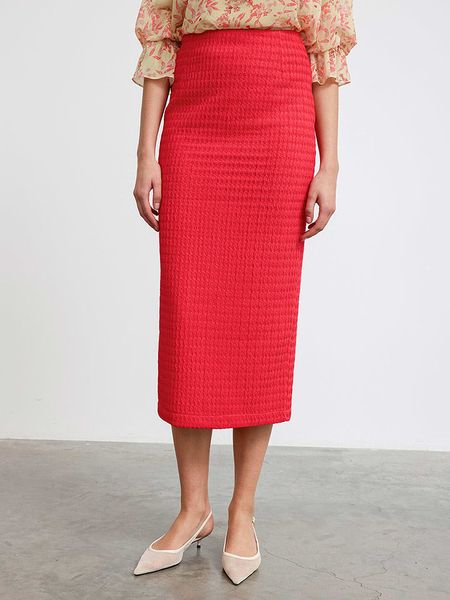 – wysokość pasa: high waist- zapięcie: boczny suwak- dolny brzeg: z rozcięciem- krój: wąski- look: jednokolorowyUwaga: Przy wyborze właściwego wariantu zaleca się korzystanie z tabeli rozmiarów.