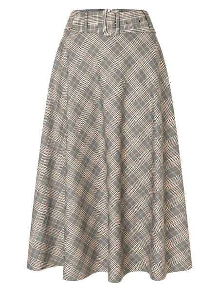 Szaro-Beżowa Wiskozowa Spódnica o Rozkloszowanym z Wysokim Stanem Fevenore