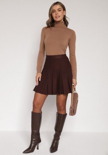 Brązowa Plisowana Spódnica z Wiskozą z Wysokim Stanem Nesadoe