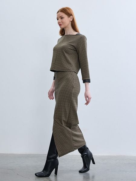 – zapięcie: suwak- krój: prosty- dolny brzeg: z rozcięciem- wzór: kratka