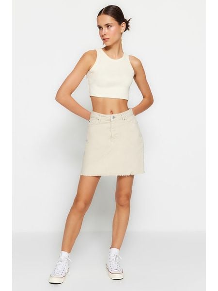 trendyol Spódnica dżinsowa w kolorze kremowym rozmiar: 36