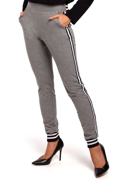 – pas / ściągacz: elastyczny- kieszenie: wpuszczane – zakończenia nogawek: ściągacz – detale: kontrastujące paski- krój: prosty- look: jednokolorowy