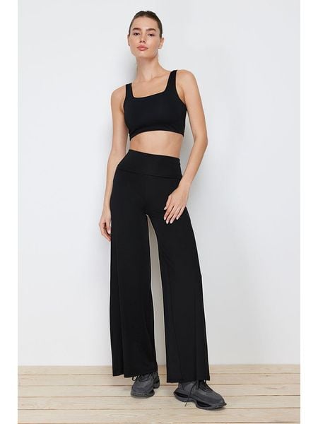 – pas / ściągacz: elastyczny- krój nogawek: szeroki- krój: prosty- look: jednokolorowy